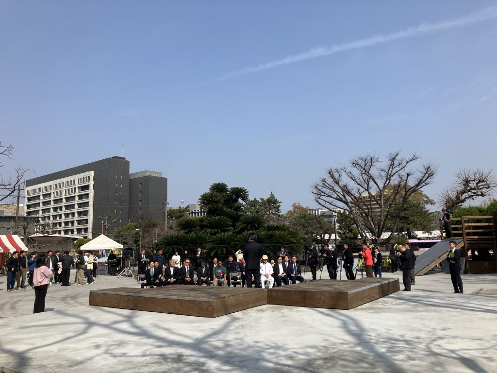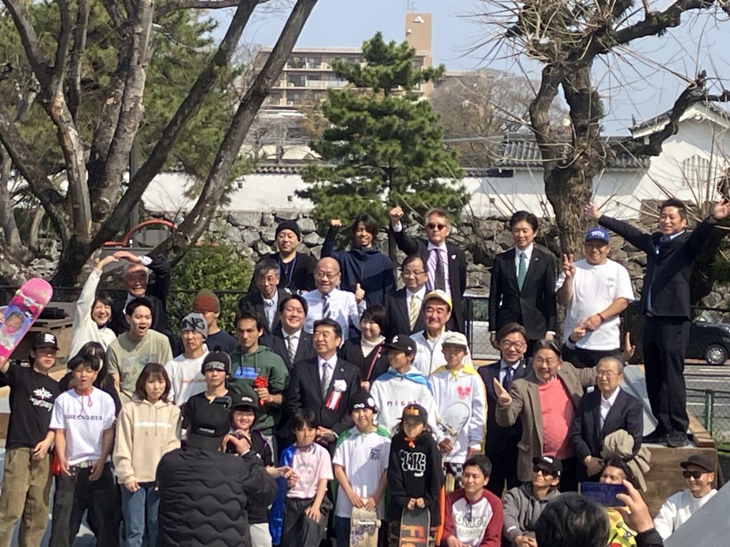 私たちが設計に携わった(セクション以外のスケートボード場、照明、フェンスなど)「大手公園スケートボードパーク」が完成し、3月28日の記念式典に参加してきました。